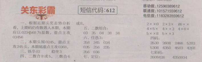 【关东彩霸】第1609期预测信息<特区报>