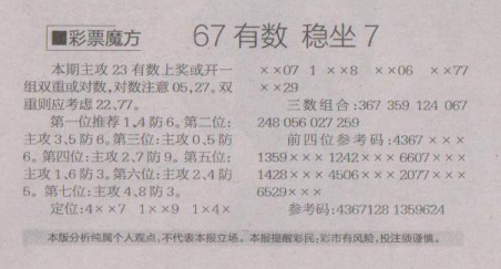 【彩票魔方】第1610期预测信息<特区报>