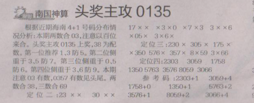 【南国神算】第1610期预测信息<特区报>