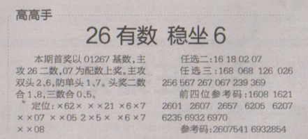 【高高手】第1611期预测信息<特区报>