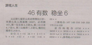 【游戏人生】第1614期预测信息<特区报>
