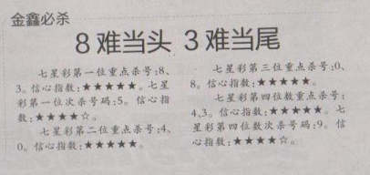 【金鑫必杀】第1614期预测信息<特区报>