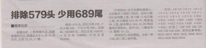 【概率玩彩】第1615期预测信息<特区报>