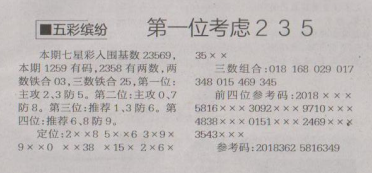 【五彩缤纷】第1616期预测信息<特区报>