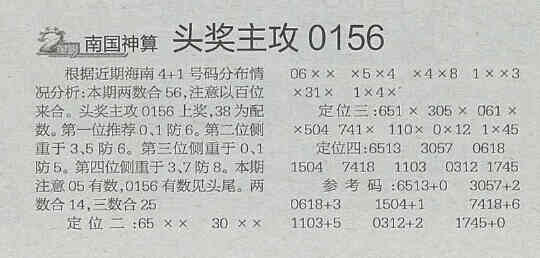 【南国神算】第1616期预测信息<特区报>