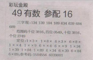 【彩坛金殿】第1617期预测信息<特区报>