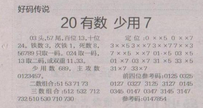 【好码传说】第1617期预测信息<特区报>