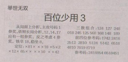 【举世无双】第1617期预测信息<特区报>