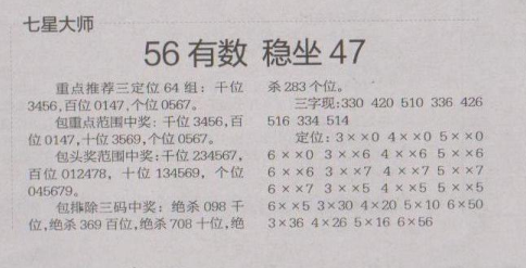 【七星大师】第1617期预测信息<特区报>