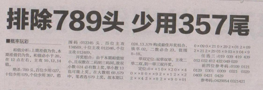 【概率玩彩】第1618期预测信息<特区报>