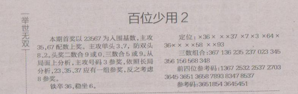 【举世无双】第1618期预测信息<特区报>