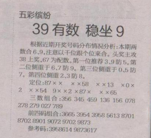 【五彩缤纷】第1618期预测信息<特区报>