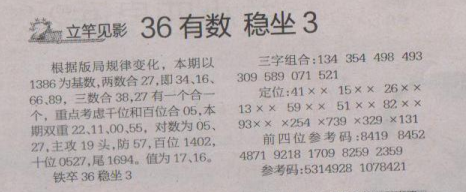 【立竿见影】第1619期预测信息<特区报>