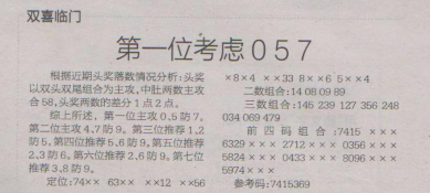 【双喜临门】第1620期预测信息<特区报>