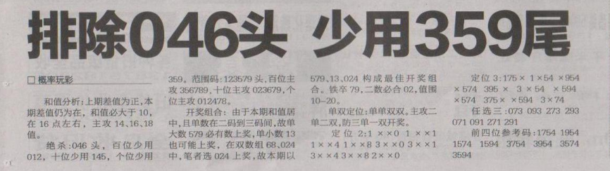 【概率玩彩】第1620期预测信息<特区报>
