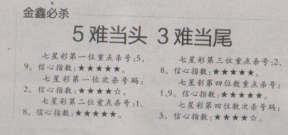 【金鑫必杀】第1620期预测信息<特区报>