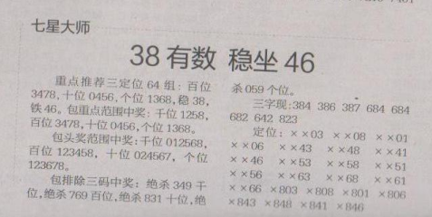 【七星大师】第1620期预测信息<特区报>