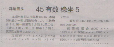 【鸿运当头】第1621期预测信息<特区报>
