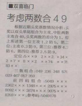 【双喜临门】第1621期预测信息<特区报>