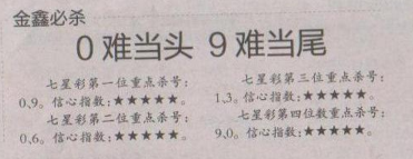 【金鑫必杀】第1621期预测信息<特区报>