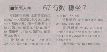 【笑面人生】第1622期预测信息<特区报>