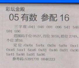 【彩坛金殿】第1623期预测信息<特区报>