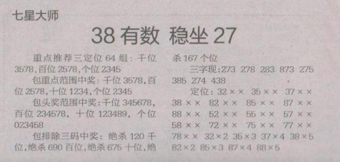 【七星大师】第1623期预测信息<特区报>