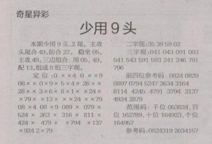 【奇星异彩】第1623期预测信息<特区报>
