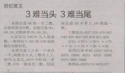 【世纪奖王】第1623期预测信息<特区报>