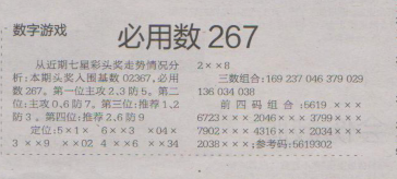 【数字游戏】第1624期预测信息<特区报>