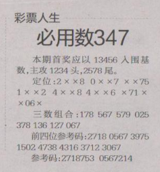 【彩票人生】第1624期预测信息<特区报>