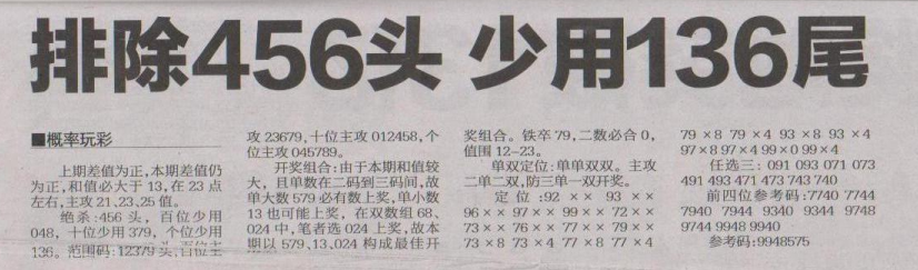 【概率玩彩】第1624期预测信息<特区报>