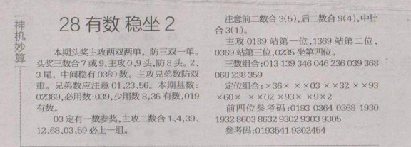 【神机妙算】第1624期预测信息<特区报>