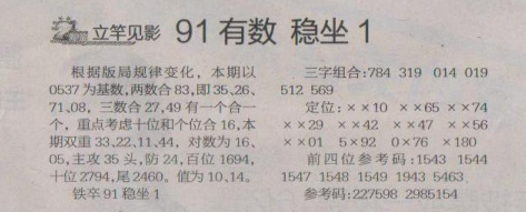 【立竿见影】第1625期预测信息<特区报>
