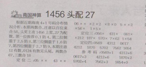【南国神算】第1625期预测信息<特区报>