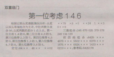 【双喜临门】第1626期预测信息<特区报>