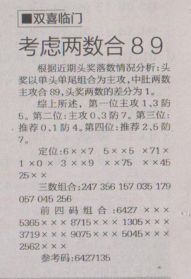【双喜临门】第1627期预测信息<特区报>