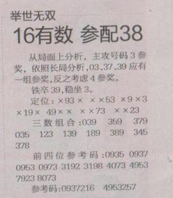 【举世无双】第1627期预测信息<特区报>