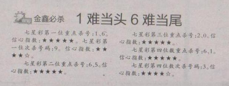 【金鑫必杀】第1628期预测信息<特区报>