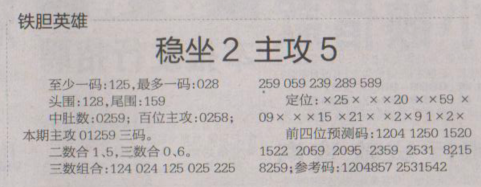 【铁胆英雄】第1629期预测信息<特区报>