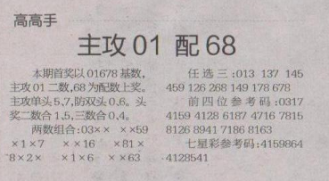【高高手】第1630期预测信息<特区报>