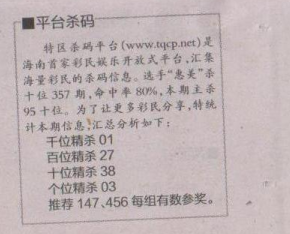 【平台杀码】第1630期预测信息<特区报>