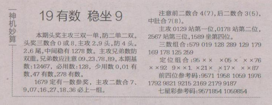 【神机妙算】第1630期预测信息<特区报>