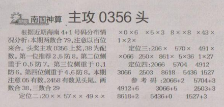 【南国神算】第1631期预测信息<特区报>