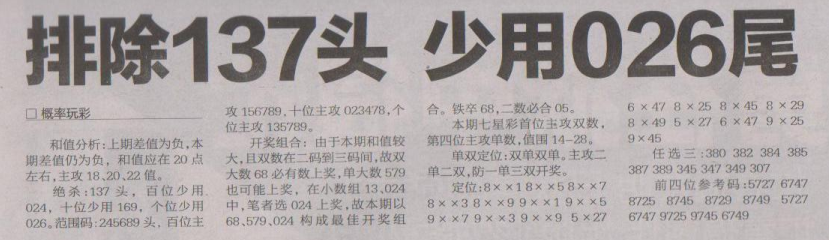 【概率玩彩】第1632期预测信息<特区报>