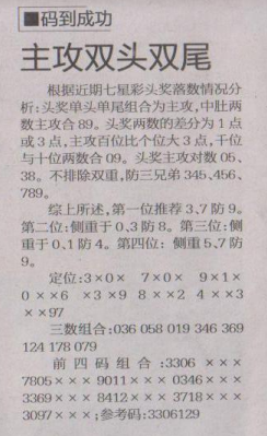 【码到成功】第1633期预测信息<特区报>