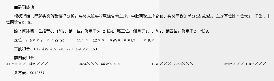 【码到成功】第1634期预测信息<特区报>