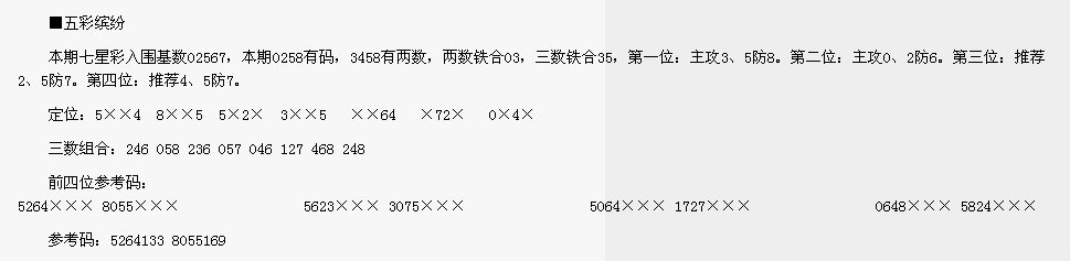 【五彩缤纷】第1634期预测信息<特区报>