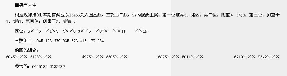 【笑面人生】第1634期预测信息<特区报>