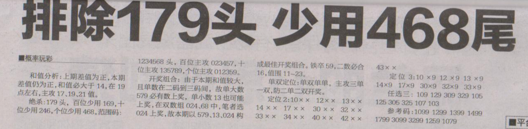【概率玩彩】第1634期预测信息<特区报>